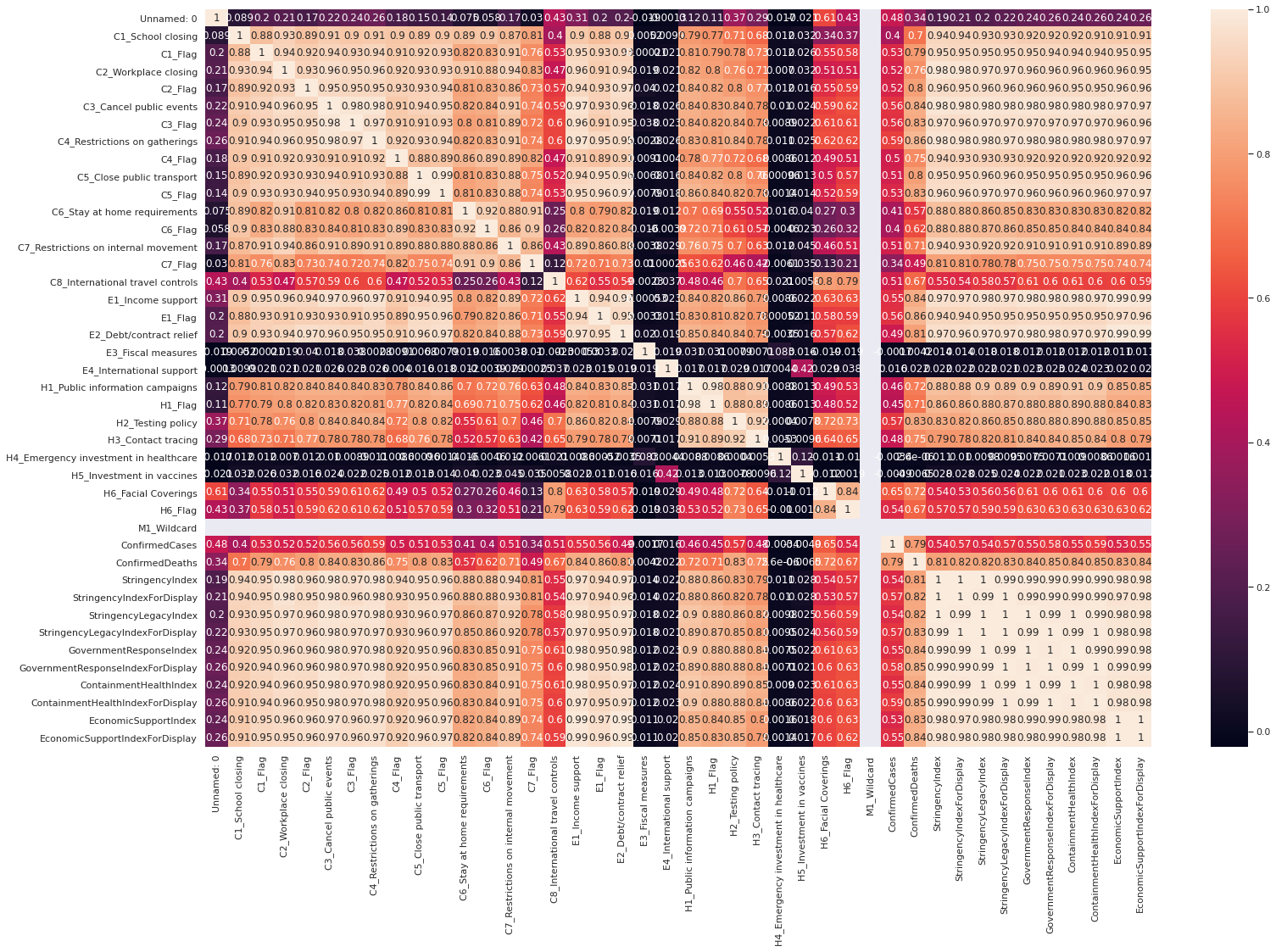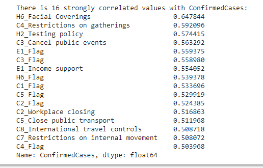 After performing numerical data distribution which can be seen in detail in our Policy Data Colab notebook, we found features which are strongly correlated with ConfirmedCases and ConfirmedDeaths.