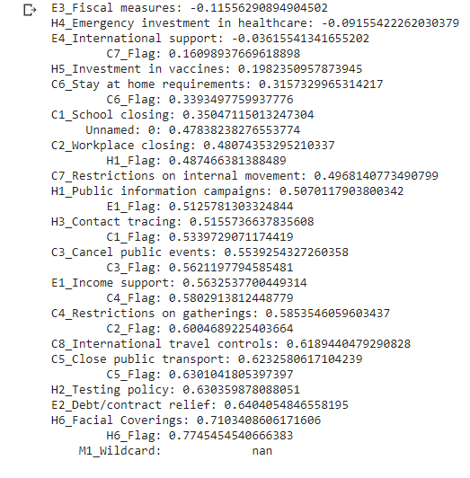 We then removed the outliers from the cleaned data and performed another correlation analysis to ConfirmedCases on the Policy dataset.