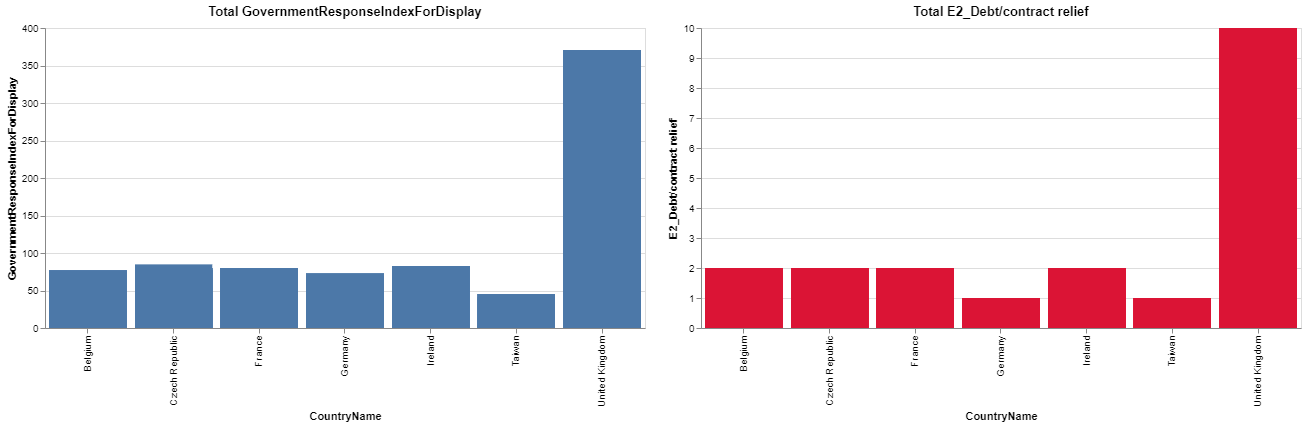The Uk has recorded 1, 317, 496 million total cases with a recent spike increase from September 19th, 2020 with over 50, 500 plus deaths one of the highest in the world. If we compare Taiwan to; France, Germany, Czech, Uk and Ireland we will discover some very fascinating insights about these countries' respective policy data. Let’s take a look at the policy data relationship.